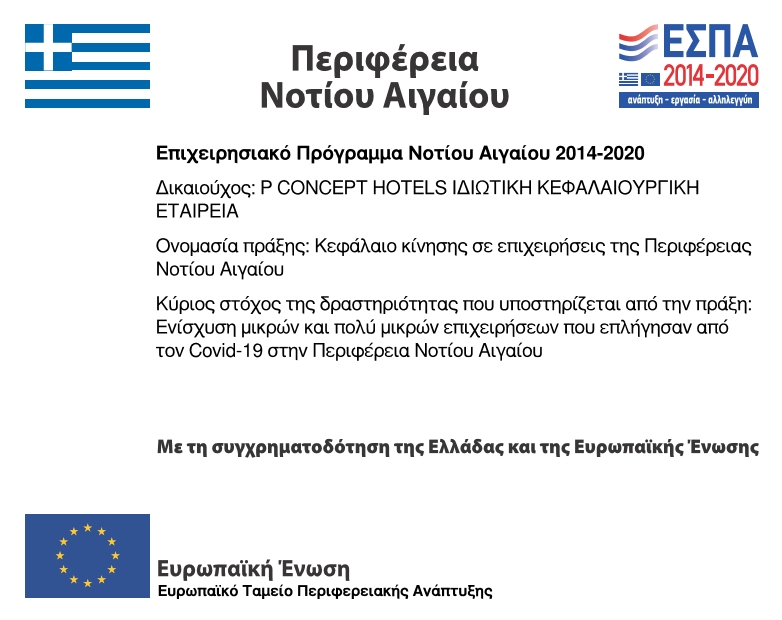 PCONCEPTHOTELS Η P CONSEPT HOTELS ΙΚΕ ιδρύθηκε το 2018 με αντικείμενο την παροχή τουριστικών υπηρεσιών διαμονής υψιλών προδιαγραφών και ενοικίασης αυτοκινήτων. Η έδρα της εταιρείας είναι στην Σαντορίνη. Έχει στην κατοχή της 3 ξενοδοχειακές μονάδες και γραφείο ενοικιάσεων αυτοκινήτων. P CONSEPT HOTELS IKE ΕΚΜΕΤΑΛΕΥΣΗ ΤΟΥΡΙΣΤΙΚΩΝ ΥΠΗΡΕΣΙΩΝ ΟΙΑ ΣΑΝΤΟΡΙΝΗ ΑΦΜ:800950867 ΔΟΥ:ΘΗΡΑΣ ΑΡ.ΓΕΜΗ:1455971380000info@pconcepthotels.gr